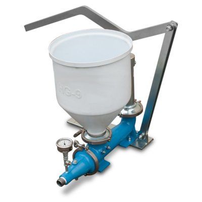 The Handy-Grout HG-9 is a hand-operated, portable grout pump for smaller grouting jobs, such as door frames, encasements, waterproofing, void fill and other grouting applications. The HG-9 is designed for durability while still offering a lightweight grouting solution. The HG-9 features cast assembly, ball-check manifold, polyurethane hopper and pressure gauge.
