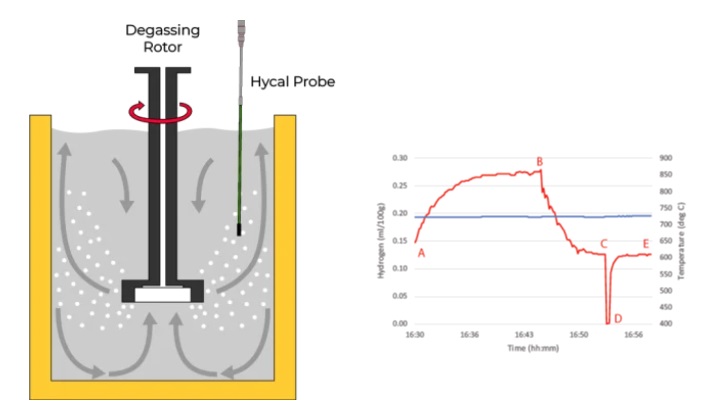 - Monitor a melt treatment to achieve a desired hydrogen level e.g. degassing