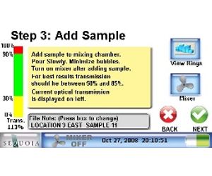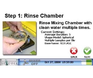 Clicking the measure button from the main menu walks the user through the sample procedure step-by-step. The first order of business is to make sure that the mixing chamber is clean and rinse it if it is not.