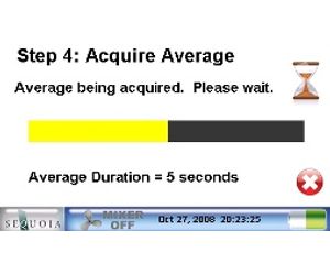 Once the concentration is in range and the optional notes have been entered the instrument will acquire the data, using the averaging duration specified in the Setup Menu. Data are recorded internally at 39 Hz, so averaging over 5 seconds will create an average based on 195 measurements.
