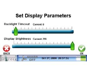 In the Display menu, the user has the option to set the backlight timeout (in order to conserve power) as well as the display brightness by dragging the pointer along on the sliding scale.