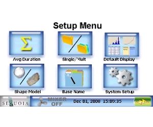In the Setup Menu, the user can choose between six sub-menus. The Avgerage Duration menu allows the user to set the time (in seconds) that averaging takes place. Note that the LISST-Portable gives the user the option to select a shape model for processing the data. The LISST-Portable is the only particle size analyzer in theworld that gives the user such a choice. This option isselectable on a sample-by-sample basis for maximum versatility.