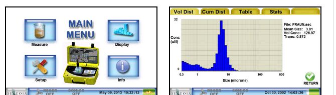 A more detailed introduction to the user interface can be found on the LISST-Portable|XR video page. There are two videos related to the user interface. One is on “How to make a Measurement” and the other is an “Intro to the Main Menu”.