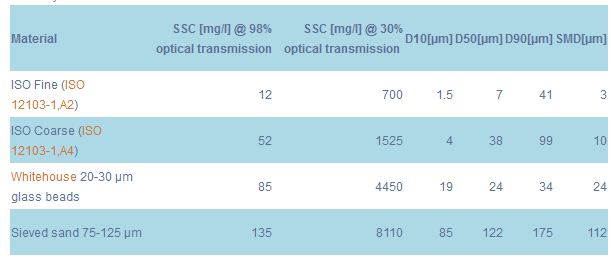 - Concentration range 30-1,900 mg/l. NOTE: Actual range is dependent on the grain-size and size distribution of the suspended particles. See table below for details and examples of concentration ranges based on measurements using ISO particle standards and easily obtained reference materials. SMD: Sauter Mean Diameter.