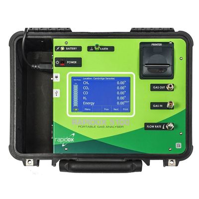 The Rapidox 5100 Portable Gas Analyser is a high specification instrument designed for the analysis, control and monitoring of gas in a wide range of applications including; biogas analyser, syngas, anaerobic digestion and fermentation processes. Housed within an heavy-duty IP66 case, this analyser makes for a truly portable field instrument with laboratory functionality. This analyser is also capable of computing a calorific value of sample gas on site.
