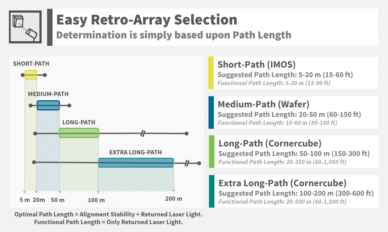 Path lengths from 5 - 500 m (15 - 1,500 ft)