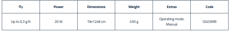 PORTABLE OZONE GENERATOR. Purifies the air and cleans surfaces within the entire volume of the room. Destroys viruses and bacteria. Removes unpleasant odours. Efficiency: up to 99%. Suitable for any room up to 20 sq. m.