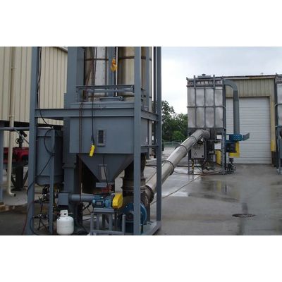 This system is specially designed for producing light-density cryogenic perlite insulation. A modular system that is quickly assembled and disassembled, it is stored in a 40-foot, open-top container. It includes all components necessary to expand properly sized perlite ore, separate the expanded perlite from the exhaust gasses, and convey the perlite into the vessel to be insulated. The exhaust gasses are bag filtered to meet all environmental regulations.