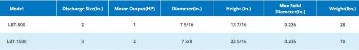 - LBT-800 comes with 2" Discharge / 1 HP.