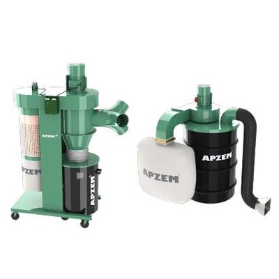 Portable Two stage mechanical dust collectors are more efficient and lasts longer than any single stage dust collector . Here more heavier dusts are collected in drum by cyclonic action (first stage) and only finer dusts pass through blower impeller and collected in filter bag (second stage). Since most of the dusts are collected in drum before blower entry, the abrasive action of dusts on impeller and casing causing blower imbalance is very much negligible than single stage dustcollector. All Apzem dustcollectors are build with outmost quality, efficiency and safety. Complying with all national and International standards. All our portable dustcollectors comes with industrial grade castor wheel for greater portability and Longer life.