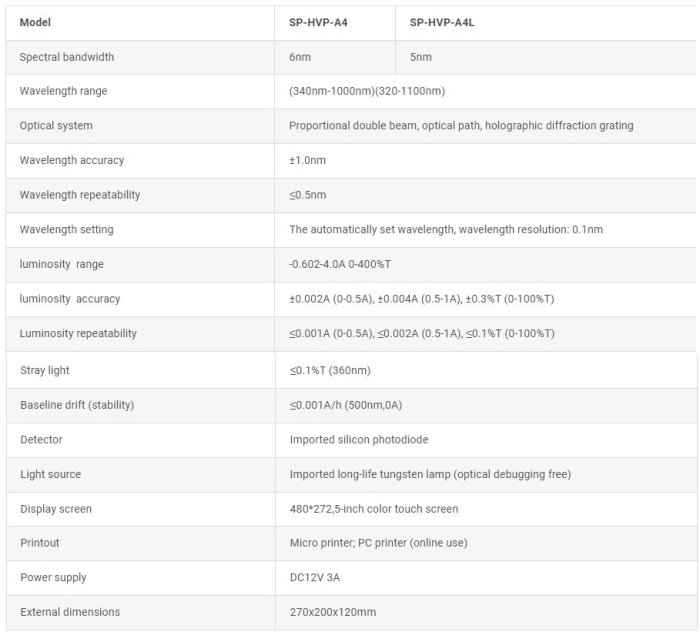 InfitekModel SP-HVP-A4, SP-HVP-A4L -Portable Visible Spectrophotometer, Double Beam