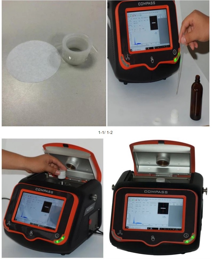 1-3, Put the sample cup on the compass XRF sample loader, which is perfectly fit wit the sample cup dimension.