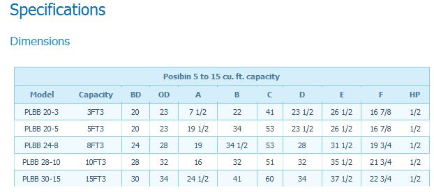- Capacity: 3 to 15 cu. ft., 25 to 750 cu. ft.