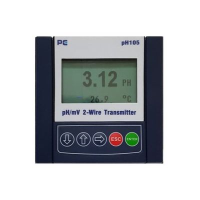 Potence Controls PC pH105 Transmitter can be selected to measure pH or mV along with the temperature. Measured Parameter and Temperature can be displayed together in pH Measurement mode. This 4 – 20 mA Isolated output industrial transmitter, a sturdy microprocessor-based instrument which transmits pH or mV measurements via a twowire power supply loop. The industrial transmitter has many userfriendly features – all of which are easily accessible via the water-resistant membrane keypad. Ideal for connecting to a PLC for advanced control systems. All user settings are retained indefinitely without battery backup. The instrument housing is designed for panel or wall mounting.