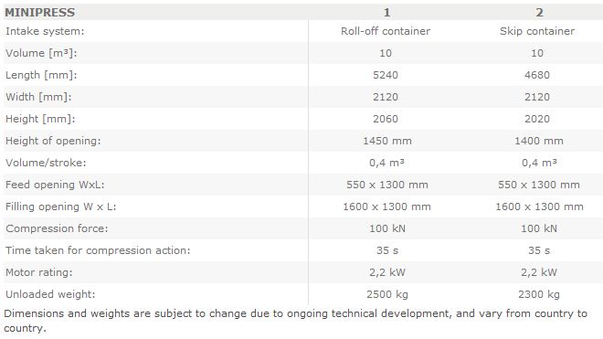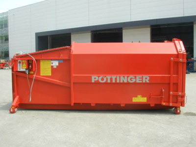The Pöttinger Press Container MINIPRESS is easy to handle and the ideal solution to compact mixed waste, plastic sheet, smaller cartons or commercial waste.