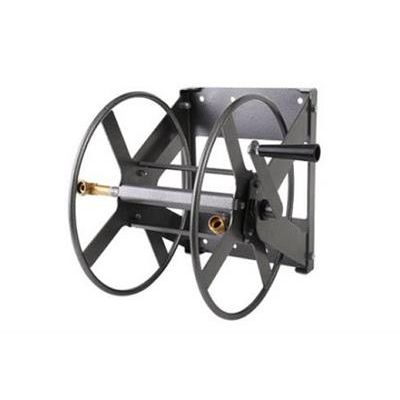 Heavy Duty wall mount reel. Brass fittings and swivel. Durable, baked on paint finish.Holds 150` of 5/8" or 100` of 3/4" garden hose. Shipped unassembled. 102-250.