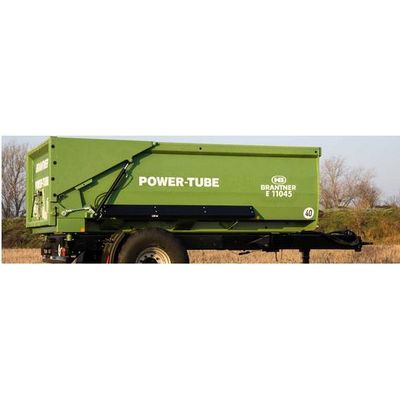The standard hydraulic rear wall can be opened wide by overhead hydraulic cylinders. Closed, the automatic mechanical pressing hook guarantees even grain tightness.