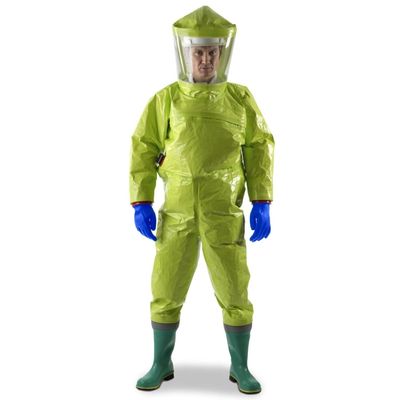 The Respirex Powered Respirator Protective Suit (PRPS) is a one piece gas tight chemical protective suit for use by emergency response personnel after a CBRN incident. The suit is manufactured from DuPont™ Tychem® TK, a high performance, seven layer, nonwoven, chemical barrier fabric that is also light in weight.