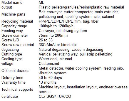 ML130/SJ130 pull strip pelletizing line /PP big bag recycling machine. Capacity:400kg/h . Screw diameter:130mm/130mm.