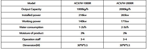 - High throughput with low humidity content less than 2%;