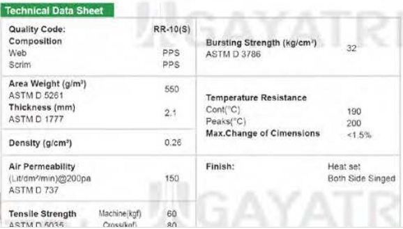 Quality Code : RR-10(S) ; Composition; Web : PPS. Scrim : PPS.