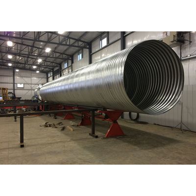 Prairie Steel specializes in large diameter culverts up to a size of 3600mm diameter and in a heavy corrugated profile of 125 x 25. Material thicknesses come in wide range from 2.0 mm (14 gauge) all the way up to 3.5 mm (10 gauge) thickness.