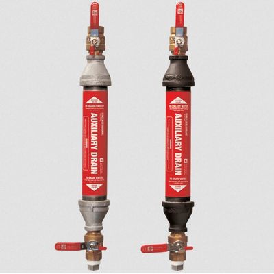 Available with Galvanized or Black Steel and an Optional Water Detector Alarm. The Model 5300 COLLECTanDRAIN is a pre-assembled auxiliary drain (low point drain or drum drip) designed to meet NFPA 13 and 25 guidelines addressing proper drainage of a dry fire sprinkler system while offering easy identification and a consistent appearance with the integrated signage. Dual handles allow draining of moisture while minimizing excessive loss of pressure. Save time on installation and give your customers a sense of security with a consistent, appealing appearance by upgrading to a COLLECTanDRAIN® 5300 Auxiliary Drain. Available in galvanized steel or black steel and with an optional Model 5100ALBV water detector alarm.