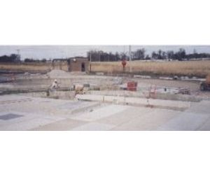 A precast concrete support system consisting of posts, columns and beams is set in place.