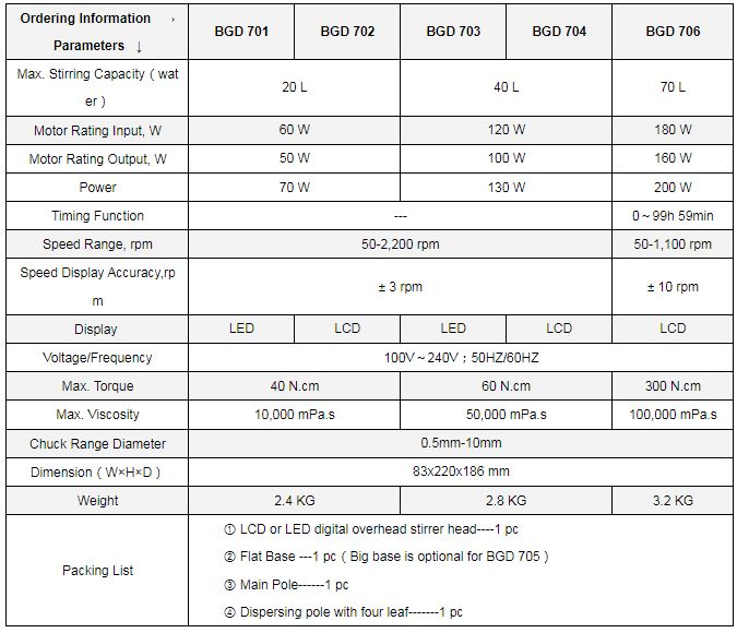 - LCD display for precise monitoring of set and actual speeds, a wide range of speed from 50 to 2200rpm with control accuracy of ±3rpm(BGD 702&BGD 704&BGD 706).