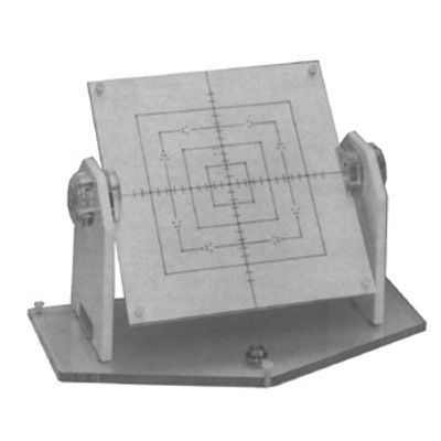 The Precision Isocentric Beam Checker II, consists of a large opaque acrylic screen backed by a secondary plate, both supported by two lateral uprights. The screen is inscribed with lines precisely defining corners, edges and center of the screen`s 10 x 10 cm and 20 x 20 cm fields. Intersecting center lines are inscribed with short lines spaced 1 cm apart. The screen can rotate about its axis in increments of 45º. Tungsten markers of 2 mm diameter are embedded in the center and corners of the fields.