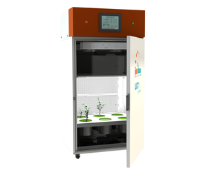 The poly klima® growth cabinet M1 was developed for plant biological applications that require stable and consistent ambient conditions. It has two climate areas with a horizontal insulation level. In the upper atmosphere area you control the temperature, humidity and CO2 concentration. In the partition between the climatic zones there are openings for 6 small lysimeters, which we as UGT can offer you as a complete solution. The temperature in this lower area can be set independently and is used to regulate the lysimeters.