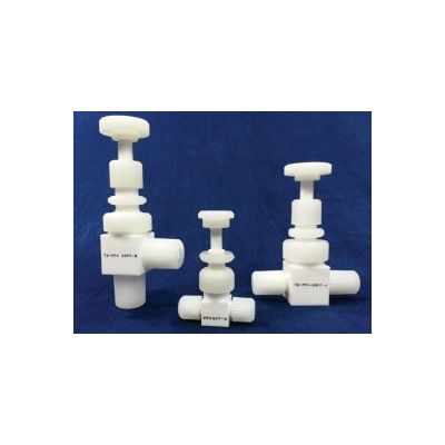 The IPS Precision Plug Valve (PPV) is a precision machined manual control valve manufac- tured from 100% virgin PTFE (all wetted surfaces) and PVDF Stem Nut. The PTFE body and stem perform equally well with harsh chemicals and ultra clean DI water. The basic construction is a single through orifice with a tapered body that matches the tapered plug for positive shut-off.