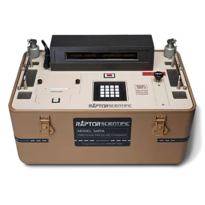 The model 3689-A Precision Pressure Standard system is based on a digital pressure transfer standard that is unmatched in the industry for its accuracy: ± 0.025% IV (Indicated Value). Auto-ranging circuitry enables step-less readings from vacuum to 10,000 psi without input from the operator, preventing damage to the instrument due to the over-pressurization of the transducers. The Model 3689-A Precision Pressure Standard displays direct reading measurements using a wide range of units, including psi, in-Hg, kPa, bar, in-H20, and ft./seawater. Three measurement modes are available: absolute mode, gauge mode, and vacuum mode.
