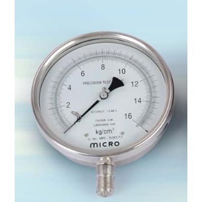 Micro Precision Test Pressure Gauges are extremely sensitive and highly accurate with adjustable knife edge pointer and mirror bends on the dial to assure precise readings and to eliminate parallax error. Also suitable for gaseous and liquid media,