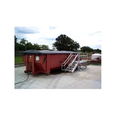 Who needs ladders and stools? Monitor your dewatering process safely and effectively from our extra heavy-duty custom aluminum working platform featuring: Locking casters, 3′ x 5 1/2′ top landing, 33 1/2″ high two-line guard rails, 3 riser stairway, 34″ high two line handrails, Dimensions are, 9′ 4 3/4″ Length, 4′ 9″ Width, 6′ 1 1/2″ Height, Easily moved by one person.