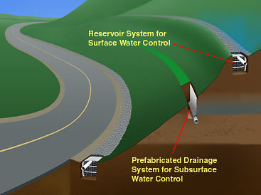 When erosion of instability of a slope is caused by subsurface water, an Eljen Prefabricated Drainage System will collect and rechannel the flow for disposal.