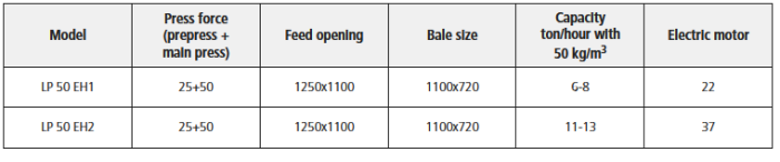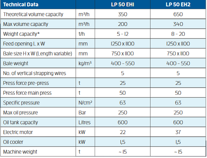 * At a material pre-bale density of 30 - 100 Kg/m³