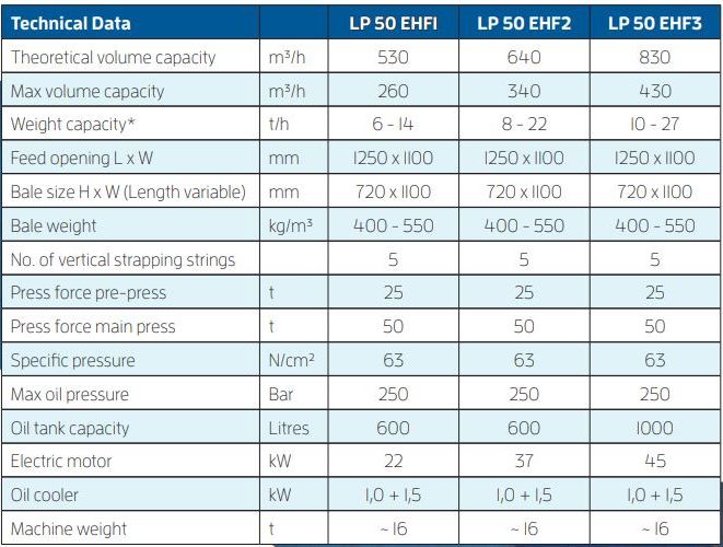 * At a material pre-bale density of 30 - 100 Kg/m³