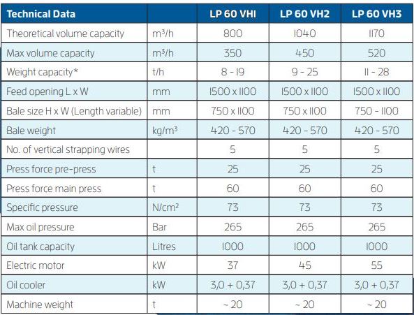 - Increased volume capacity of the machine; the number of prepressing operations may be determined depending on the material to be baled.