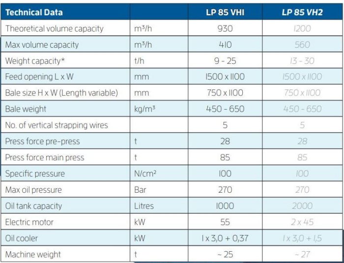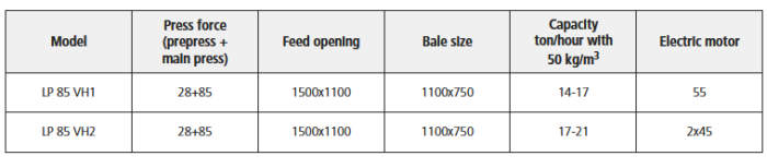 - Increased volume capacity of the machine; the number of prepressing operations may be determined depending on the material to be baled.