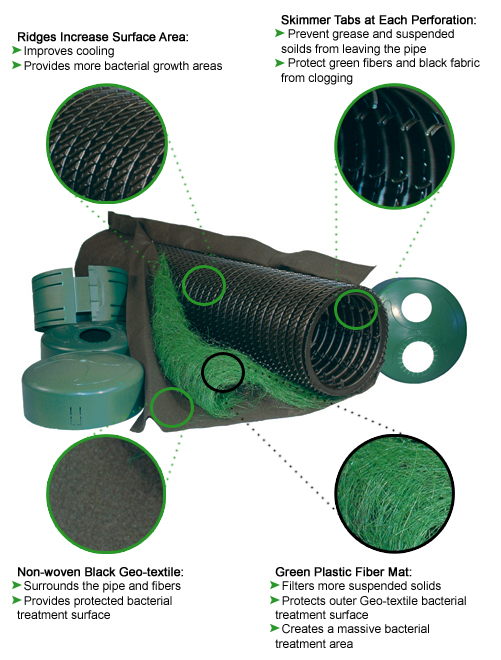 Enviro-Septic® Pipe Technology uses an all natural process to remove up to 99% of wastewater contaminants, offering unbeatable environmental protection.