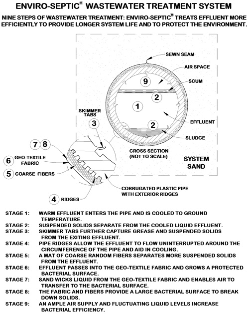 Enviro-Septic is an effective, passive onsite wastewater treatment system for residential, commercial, and community use. Enviro-Septic treats wastewater that leaves the septic tank before it is dispersed to the soil, using natural bacterial processes.