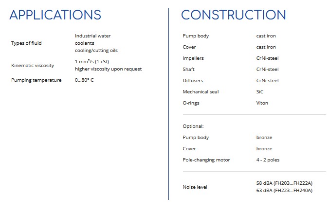 Pressure Boosting Pumps series TH and FH use closed impellers in order to minimize power consumption and to optimize hydraulic pump efficiencies. In addition, the TH series offers high pressures at short immersion depths. Inline pumps of the series FH can be used as boostingpumps if provided with positive inlet pressure. This inlet pressure can be provided by the central coolant supply or a feed pump. In such a setup, pumps of the series FH can raise the incoming pressure by up to 26 bar.