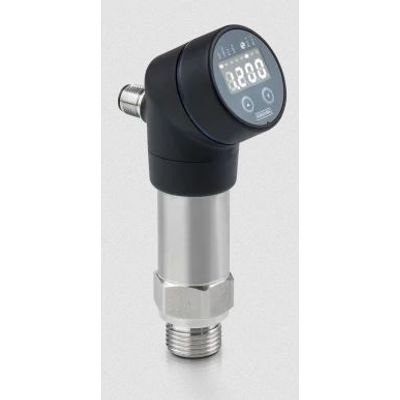 - Electronic pressure switch with transmitter functionality and integrated display with switch state indication and 2-button setup