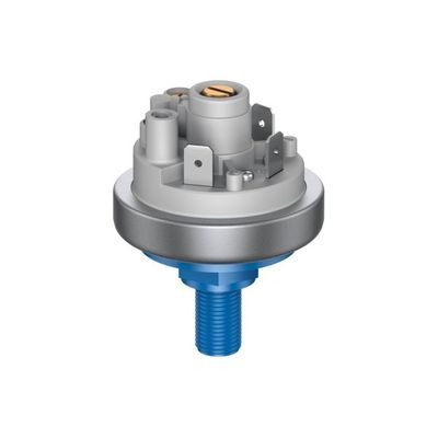 Factory-set pressure switch monitoring overpressure, vacuum or differential pressure of liquid and gaseous – also aggressive – media. Pressure setting and switching differential are factory-set by the manufacturer. For temperature above 85° C metal or PPS pressure connection is required. Upon request pressure connections of other sizes, other plastics or brass nickel-plated are available.