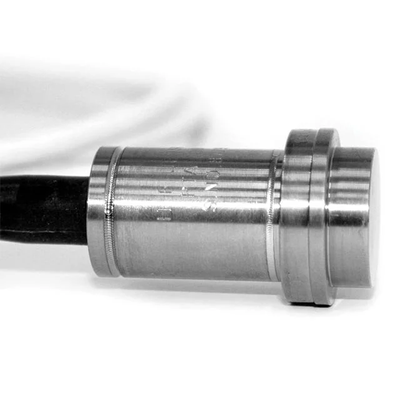 The sensing element of the pressure transducer is a diaphragm machined out of titanium grade 5. On the inside of the diaphragm is mounted a strain-gauge, which converts the pressure generated deformation to a change in resistance. Titanium grade 5 is characterized by excellent corrosion data, very high 0.1% proof stress (85 kp/mm2), very little hysteresis and excellent long-term stability. Available with teflon cable or LEMO connection. The connector version allows the sensor to be autoclave cleaned provided the connector is protected by a cover.