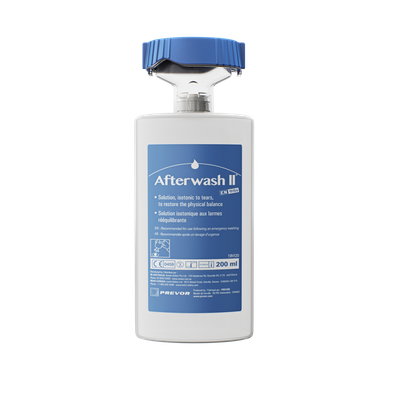 How can you regain comfortable vision after a chemical splash to the eye and intensive rinsing with DIPHOTERINE® solution? To be applied after DIPHOTERINE®, Prevor’s AFTERWASH II promotes a return to normal for the eye, with the aim of providing optimal comfort, it decreases the residual sensation and avoids eye rubbing after a chemical splash.