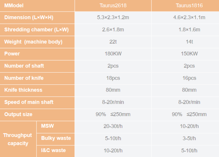 Taurus primary shredder is a robust and reliable shredder mainly applied in processing MSW, bulky waste and industry waste. It typically goes first in the waste mechanical treatment.
