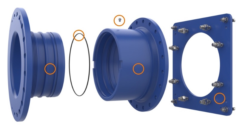 - Available in nominal sizes from DN 150 to DN 500 with flanges according to DIN, ANSI and AS4087