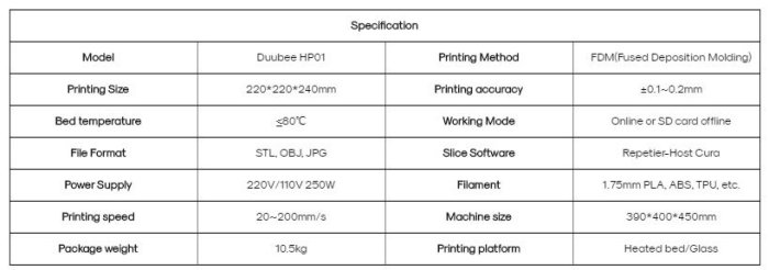 Duubee 3D - Model HP01 -Printer